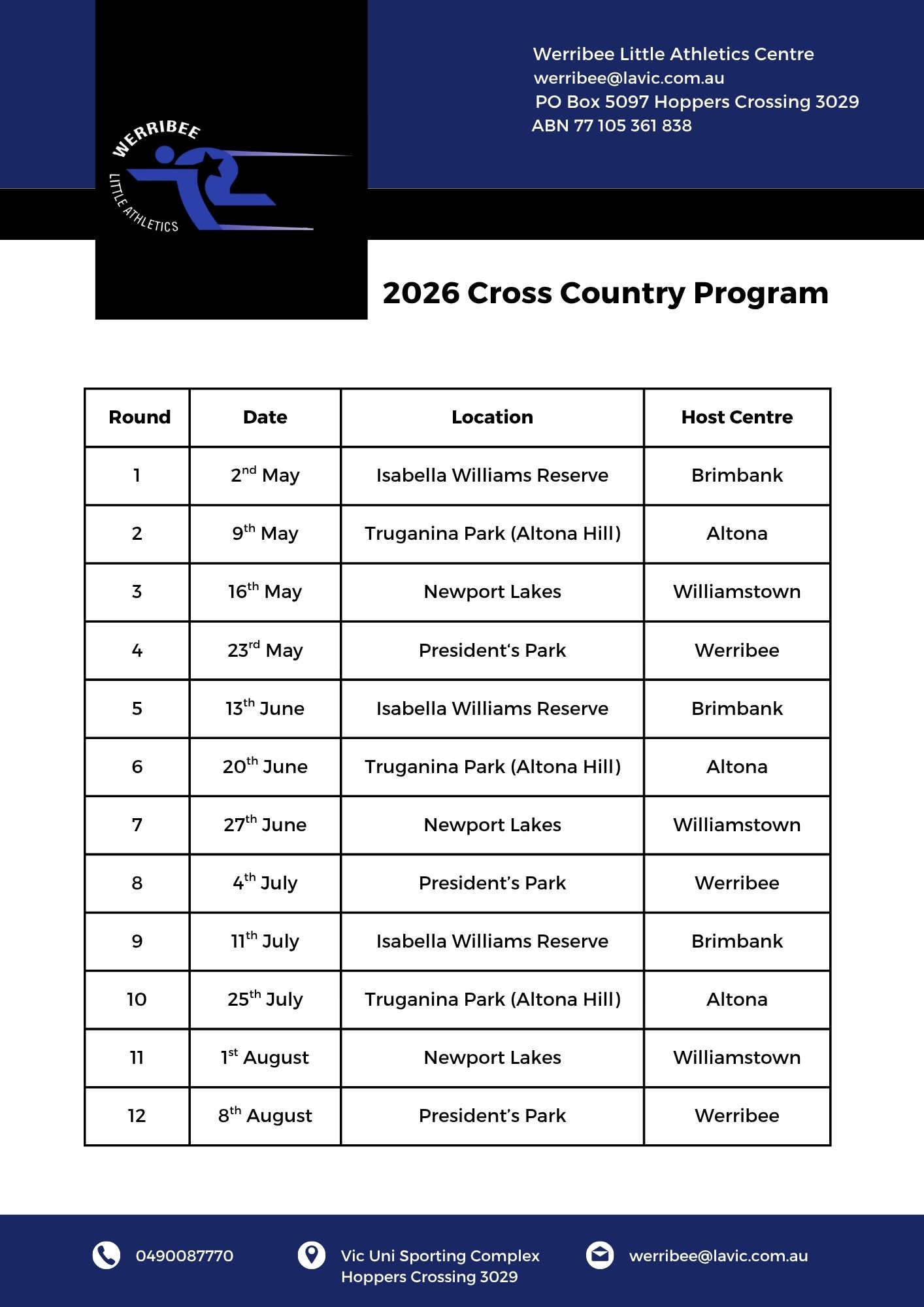 New members are welcome to join WLAC for the Cross Country season. Please visit www.lavic.com.au to finalise your registration. The 2026 Winter Fee is $85 per child.
